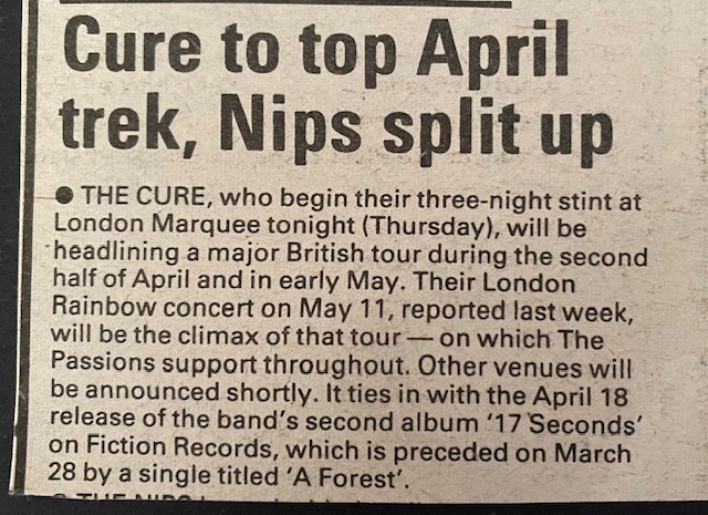 Tour: 'Seventeen Seconds'