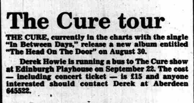 • All the songs from the album 'The Head on the Door' were played at this concert.