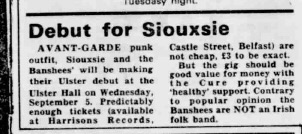 On 5 September, they played Belfast as support to Siouxsie & The Banshees.