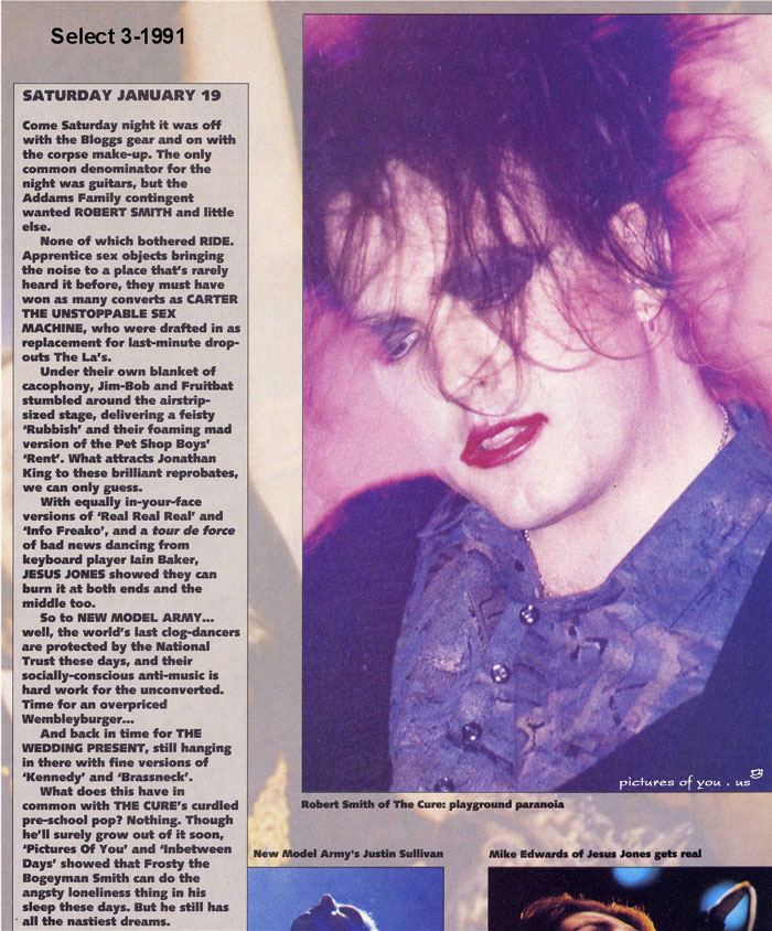 The Cure headline the Great British Music Weekend at Wembley Arena, broadcast live on Radio 1. The supporting bill includes the Wedding Present, Jesus Jones, New Model Army, Ride and The LAs.