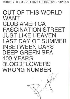 • 'Out Of This World', 'The Last Day Of Summer', 'Bloodflowers' were played live in concert for the first time ever.