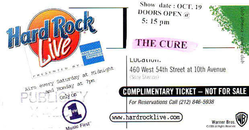 1999-10-19 New York City - Sony Music Studios (USA/NY)