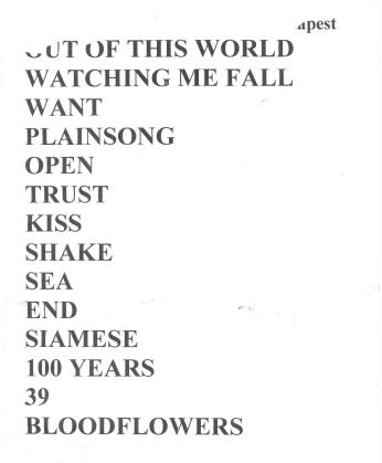 from center | has: O.O.T.World, W.M.Fall, Want, Plainsong, Open, Trust, T.Kiss, S.D.Shake, End, Bloodflowers, T.I.Boys, M | Bloodflowers = cut