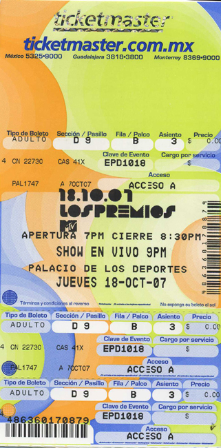 2007-10-18 Ciudad de México - Palacio de los Deportes (Mexico) "Los Premios MTV Latinoamérica"